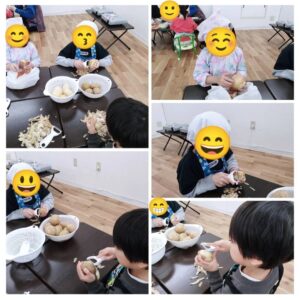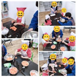 この隣で職員が玉ねぎを切っているので涙が出ちゃいそうになる児童もいましたが頑張っています~
