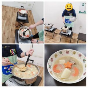 先日クッキングにて豚汁を作りました!