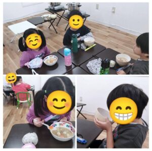 お椀によそったら、みんなでいただきます~