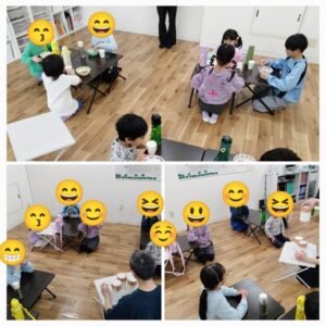 児童たちもシェイクのひげをつけながら楽しんでいます😋