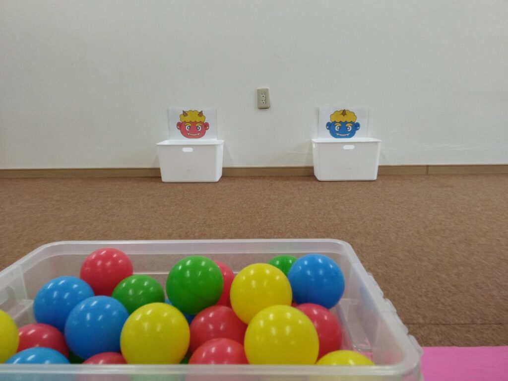 ちょっと可愛い鬼さんですがどんどんボールをぶつけていきます😅