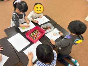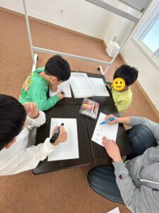 小学生チームは文字を、幼稚園チームは好きな絵を書いていきます😊