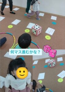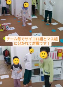 2人チームになりサイコロを振る子、マスを歩く子に分かれていざ対決!!