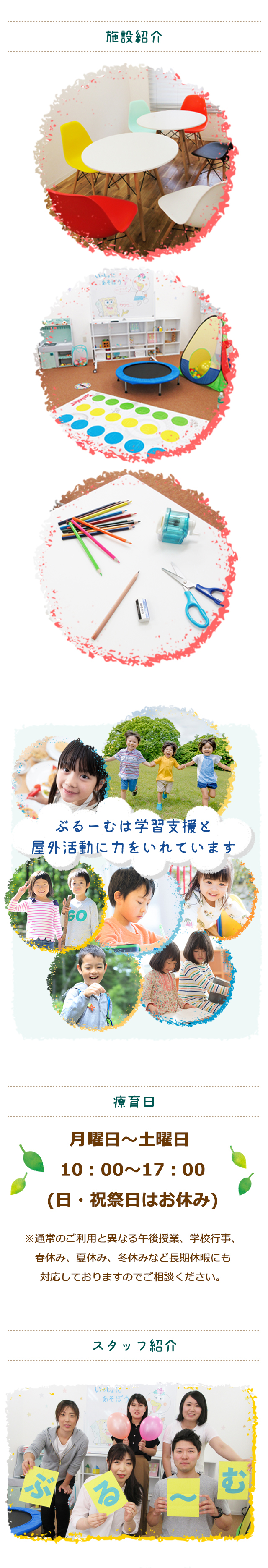 ※通常のご利用と異なる午後授業、学校行事、春休み、夏休み、冬休みなど長期休暇にも対応しておりますのでご相談ください。